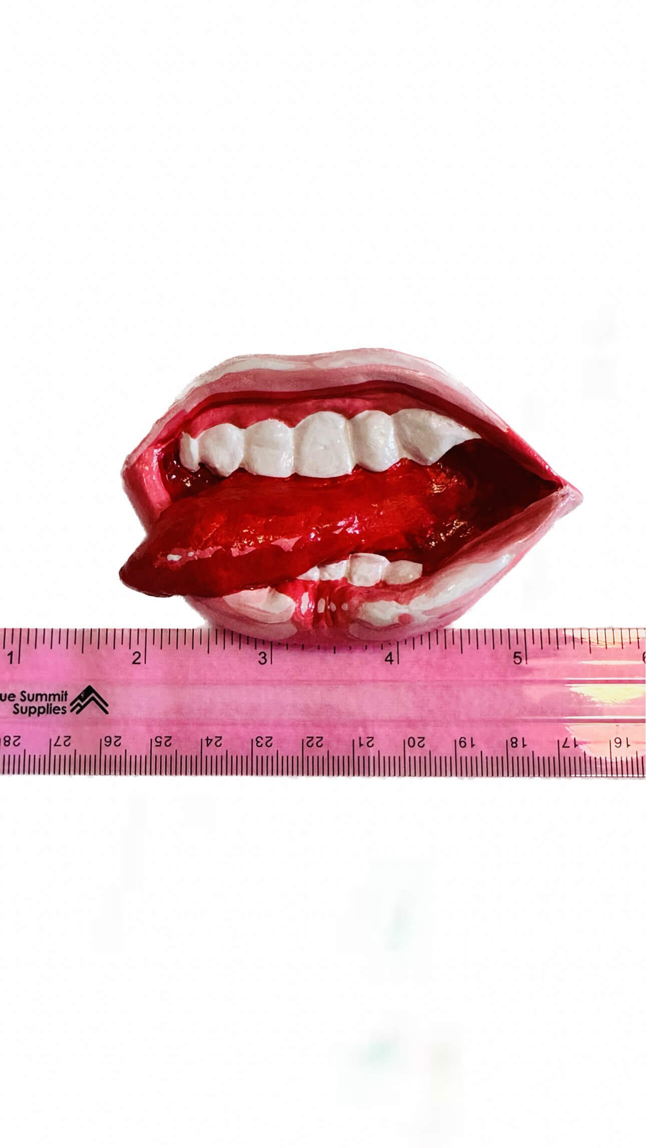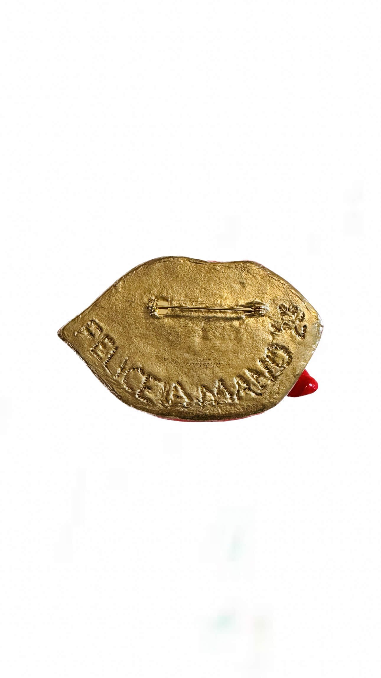 Delivering LADY STARDUST licks, this mouth is inspired by David Bowie. Boldly pin to your lapel, bag, or knitted onesie.