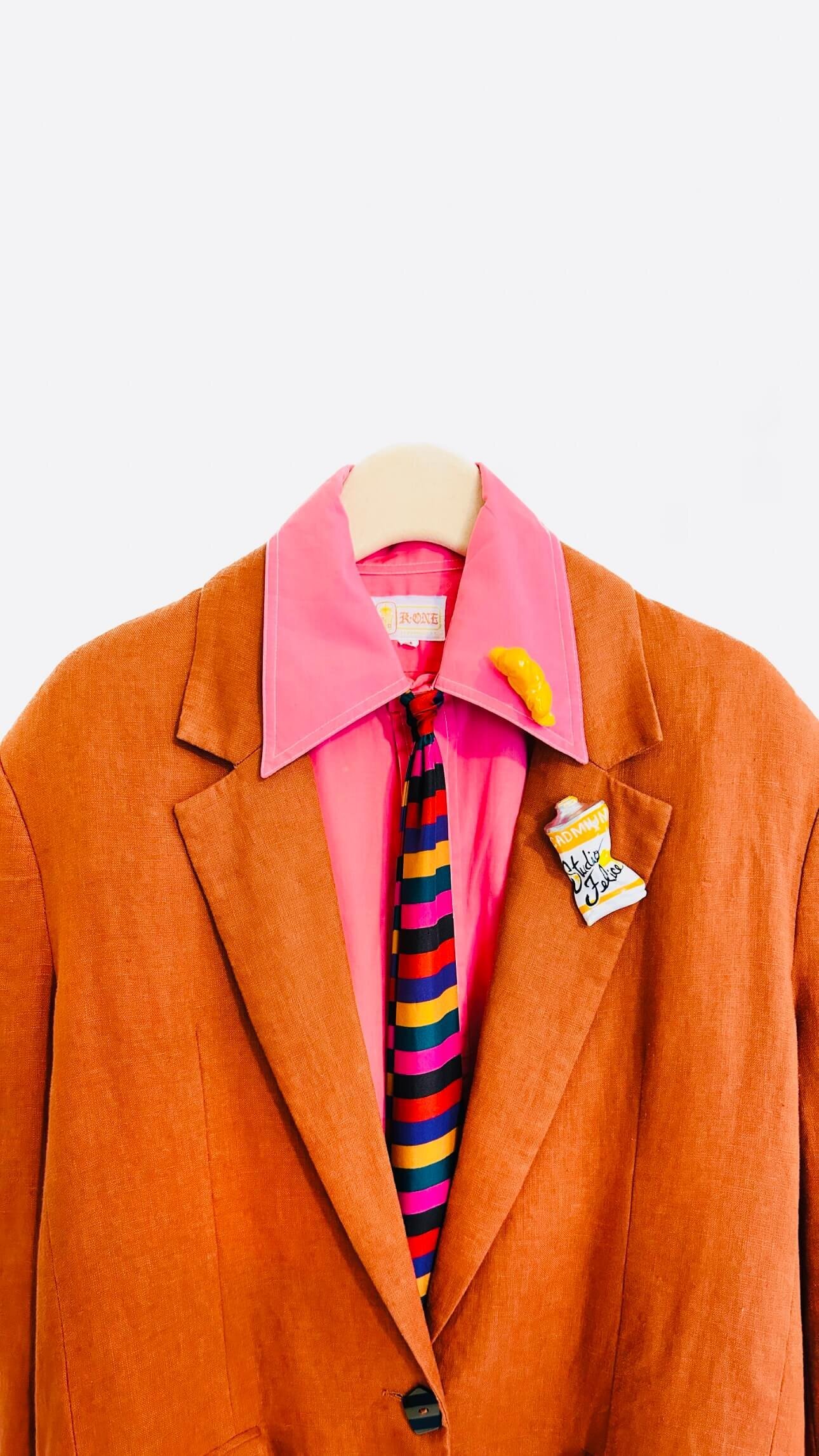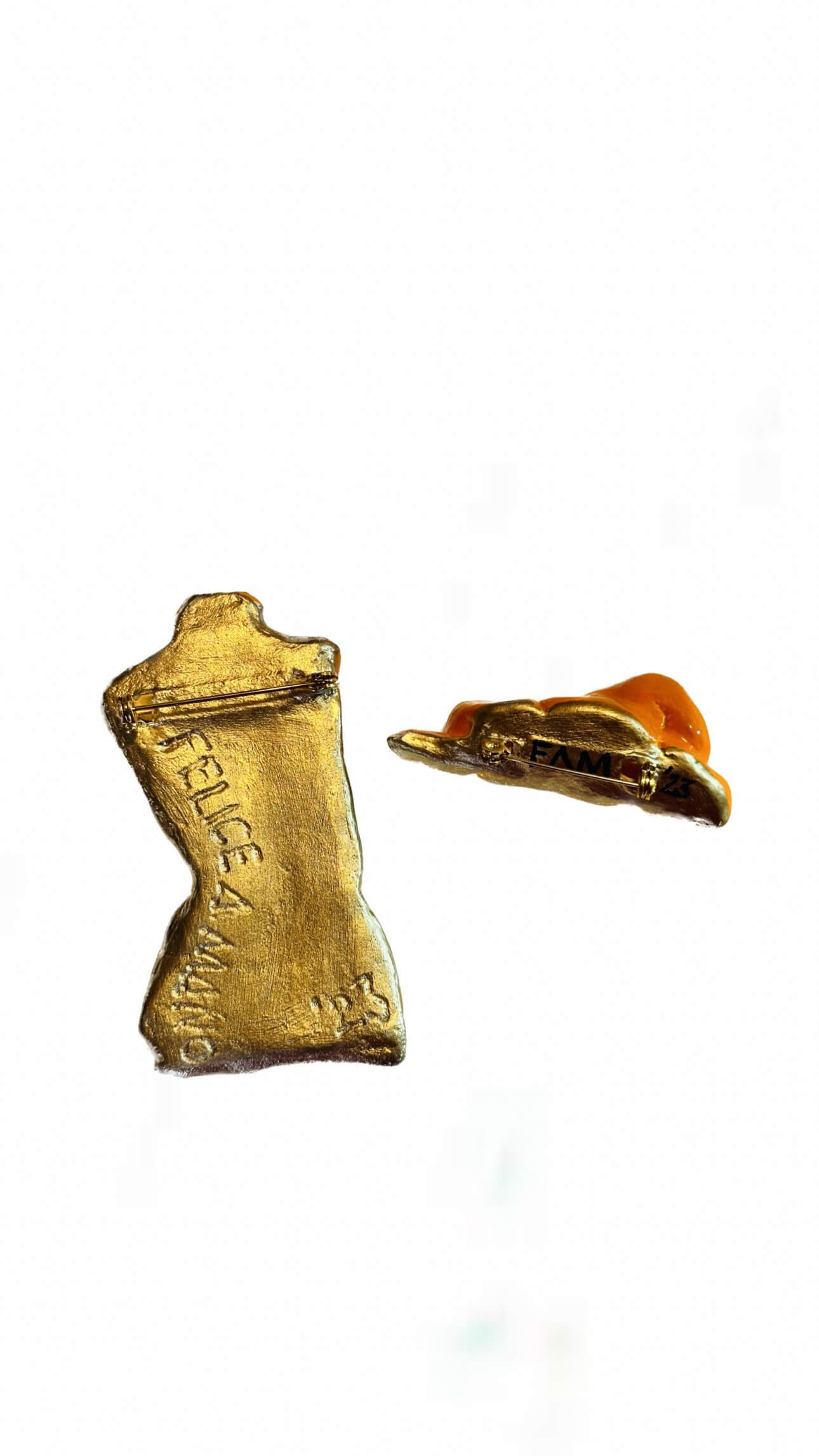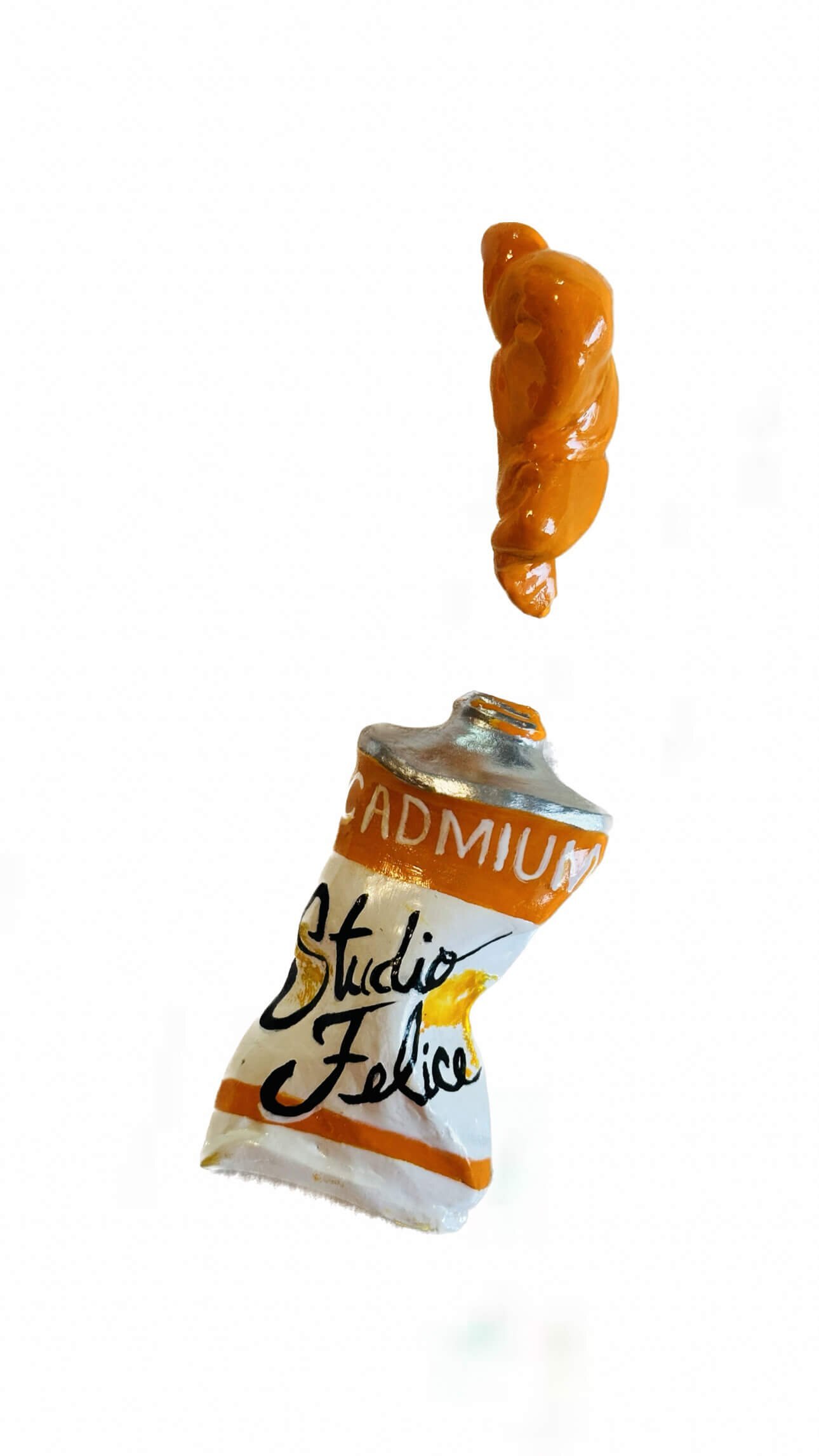 Express yourself like an artist & fool them every time with these trompe l’oeil tube of paint with accompanying paint glob brooches. Style them on your lapel, hat or bag.