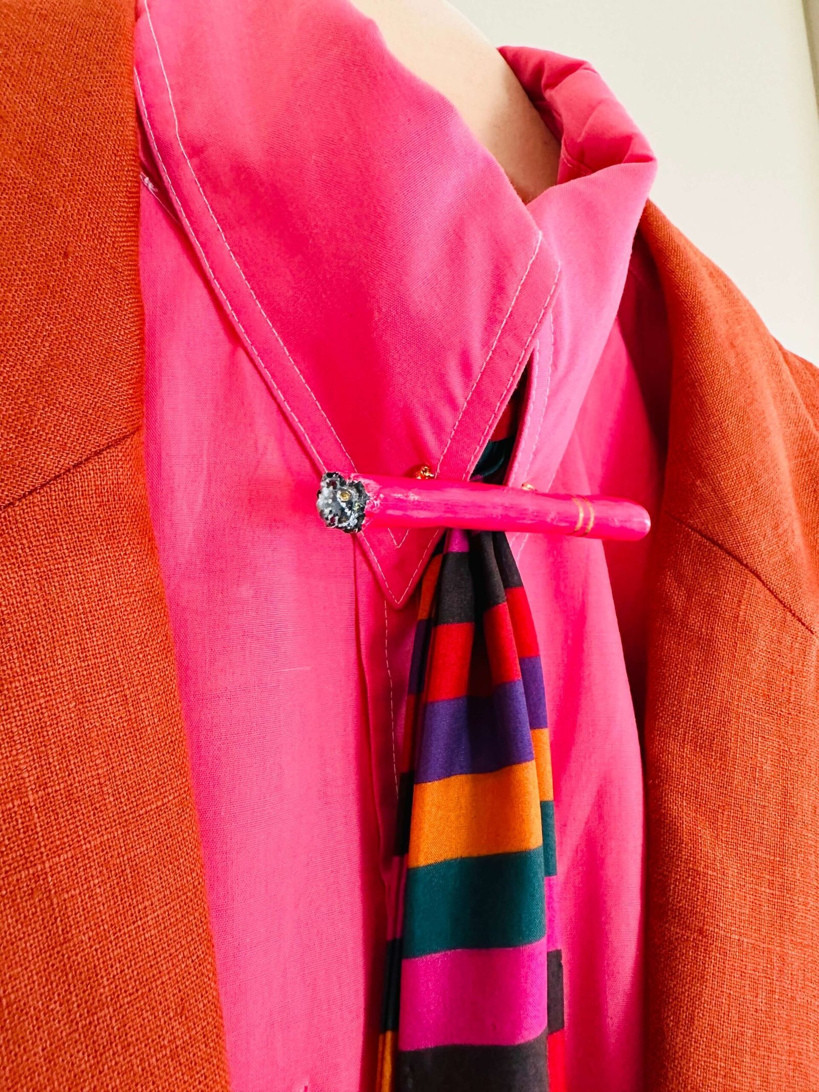 Inspired by the Pink Elephant cigarette; add a pop of color on your collar, necktie, lapel, or bag.